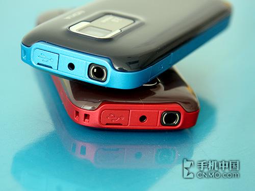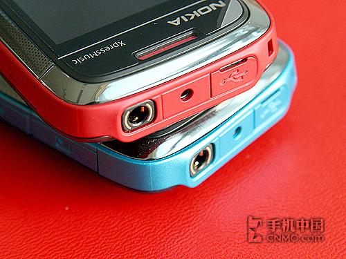 诺基亚5130XM手机顶部配有一个标准的3.5mm耳机接口,方便用户接驳主流有线高品质立体声耳机,当然,在蓝牙立体声(A2DP)的支持下5130XM也能够实现与蓝牙立体声耳机的无线连接,让用户欣赏高品质无线音乐;耳机接口左侧分别是Micro USB数据线接口和充电接口。