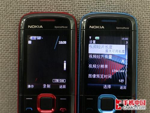 诺基亚5130XM手机支持视频录制,最大可拍摄176×144分辨率的有声视频,用户可选择预设长度或者最长长度进行录制。功能设置方面与拍照相类似,只有常规的白平衡和效果调整。