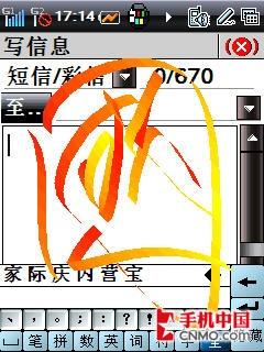 酷派8310主打“疾风手写”功能,这给很多青睐于手写操作的商务人士来说,是一件正中下怀的事情。经过测试,8310的手写识别率很高,而且输入速度非常快,8310手机的输入法基本可以达到无停顿识别的地步。手机的系统反应速度同样迅速,手机的使用效率得以有效提升。不过手机虽然拥有先进的手写技术,但屏幕配置却不尽人意,仅仅采用了2.4英寸的QVGA屏幕,视觉效果逊色一些。