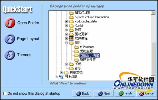 单击“Open Folder(打开文件夹)”按钮,在窗口的右栏中选择好存放数码照片的目录,然后单击“Next”按钮进入第二步(如图)。