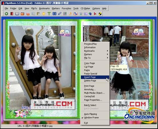 如果要向制作好的相册中增加或删除某一页面,可打开该相册至相应页,并在右页上单击鼠标右键,从快捷菜单中选择“Insert Page”或“Delete Page”进行增加或删除页(如图)。