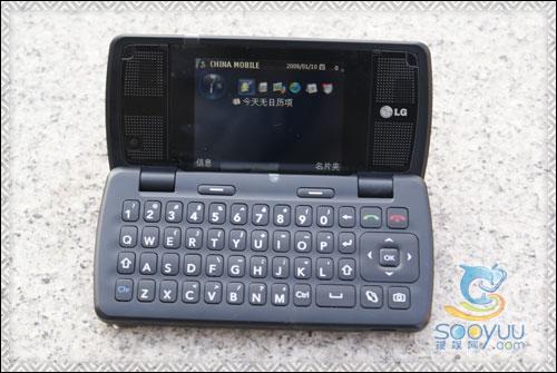 手机的机身尺寸为101.6×54.1×16.5mm,重约125.5克,如果说合上侧翻盖的KT610像一个计算器,那么打开侧翻盖的KT610又像是一个文曲星了。图为:LG KT610手机