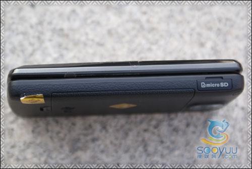 手机左侧是该机的音量调节快捷键,右侧是micro SD存储卡卡槽,并设有外盖防尘。