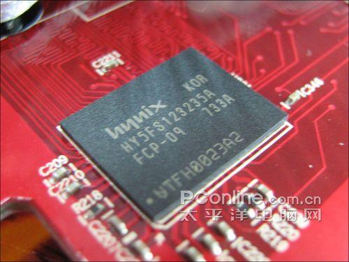 蓝宝为产品配搭了海力士1.0ns GDDR3显存,4颗16X32规格组成256M/128BIT显存系统,并且支持hyper memory技术扩展到1GB,实现更好的性能。