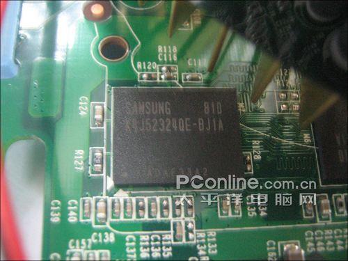 在显存方面,昂达 9600GT 512M DDR3搭载了三星1.0ns显存颗粒,组成512M/256bit的显存规格,默认频率为650/1800MHz。