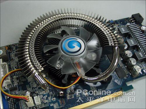 索泰 N9600GSO-512D3米格版采用黑色的铝质风扇,对于新版的发热量较低的96GSO来说,散热能满足要求。