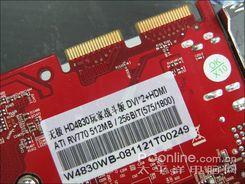 双敏 HD4830玩家战斗版从标签上可以看到清晰的512MB,但是要注意的是512MB没有注明是HM512MB,实际显存只是256MB,可以共享至512MB。