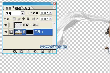 我们为图层一添加图层蒙板。点击“图层”菜单“选择“添加图层蒙板”再选择“隐藏全部”。为图层一添加了一个图层面板,这时候你的图片如下图所示,图层一在图片中”看不见“了。只能看到你抠出来的MM了!
