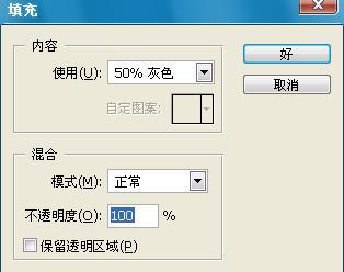 继续为图层2填充上灰色背景(看清楚,现在要操作图层2咯~)。选择编辑,填充,按照下面选项选择,