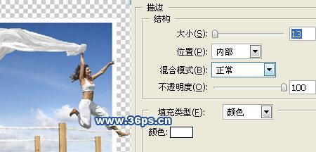 紧接着,为这个蒙板描边。大小你看着做,我这边大约13像素是可以的,颜色选择白色,位置选择内部。这时候你就看到边框的感觉了!