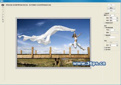 下面我们来给图层一进行下变形和美化。其实变形的主要目的是掩饰我们刚开始抠图的不足,你看,裙摆那明显有抠取不好的地方,我们用侧角度把它掩饰掉。