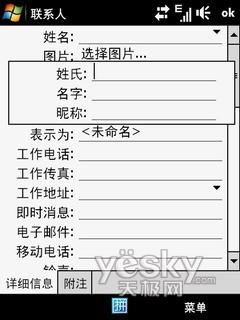 电话短信电话方面,Pro沿用了之前WM系统机器的特点,还可以算得上是方便快捷。比较有特色的是有电话呼入,只要将手机屏幕朝下放,就能够自动静音或是切断电话,有陌生电话呼入或者呼出,手机会提醒我们是否需要存储该号码,如果需要,只用几个简单的步骤就可以很方便的保存。通讯录则是超详细的内容记录,名片式的管理让用户可在同一联系人名下记录多达约几十项的信息记录,还可通过蓝牙、短信等途径发送联系人资料共享。