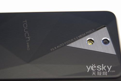 全黑的Pro与之前Touch Diamond保持了一个风格。前面板还是采用金属拉丝材质,而加厚的后盖则是采用塑料材质,不过再没有采用高抛光设计,之前指纹收集器实在令人印象太深刻了。于是这次采用软胶覆盖,不但增加了手机的摩擦系数,使得在使用中不会因为失误使手机滑落,也同时解决了指纹的困扰。并且亚光外观更使得手机折射出低调的奢华。