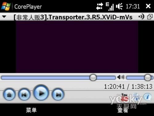 多媒体方面小编介绍过很多次,WM系统手机在播放器选择上余地很大。不论是MP3播放还是视频播放,都有很好的软件支持。其中首推就是coreplayer,其音乐方面支持MP3, MP2, AAC, MKA, WMA, Midi, WAV格式,而视频则支持Flash/FLV , ASF, ASX, AVI, M2TS, 3GPP, MOV, MPEG-4, OGM, NSV格式,基本没有不能播放的格式,播放高码率的视频,也没有拖沓的现象,效果很令人满意。