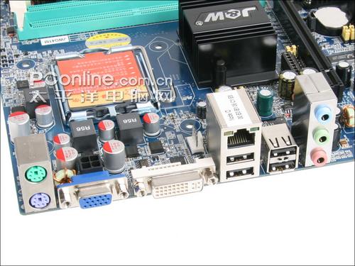 杰微 JWG41M主板的背部I/O接口部分,除一般的常规配置外,提供了VGA、DVI-I,整体接口比较丰富。