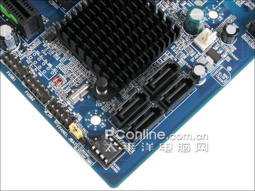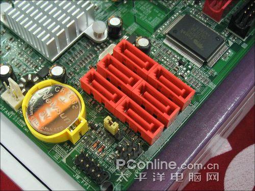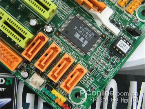 在磁盘接口上,总共提供了6个SATA 3.0Gb/s接口,并支持SATA RAID 0/1/0+1/5/JBOD磁盘阵列功能。
