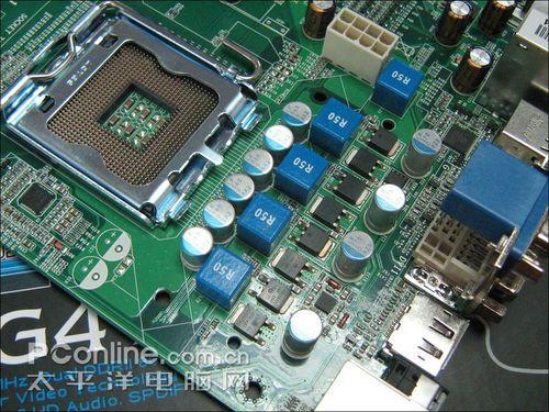 主板CPU供电为四相供电,在用料方面也很扎实,全固态电容加封闭式电感,为系统运行的稳定提供保障。华擎 G31M-S一点也没因为降价而偷工减料。