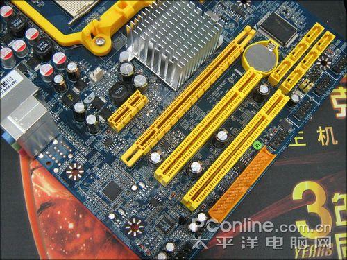 磐英 AG1主板提供1条PCI-Express 2.0插槽,向下兼容PCI-16X,另外还有1条PCI插槽。