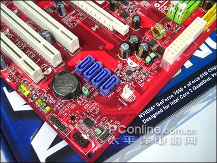 其他性能方面,这款主板总共提供了4个SATA 3.0Gb/s接口,支持SATA RAID 0/1/0+1/5/JBOD磁盘阵列功能。提供1条PCI-Express X16插槽,支持PCI-E 2.0规范,2条PCI插槽。
