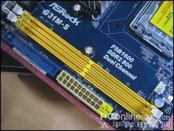 华擎 G31M-S提供两条内存插槽,支持双通道DDR2 800/667/533内存规格,最大支持4GB内存容量。虽然主板仅提供两条插槽,但我们可以看到内存滤波供电丝毫没有缩水的情况,完整的用料可以保证内存的稳定运行。采用ICH7南桥芯片提供四个SATA 3.0G/s接口和一个IDE接口,但并不支持RAID阵列模式。