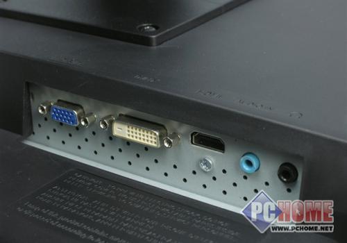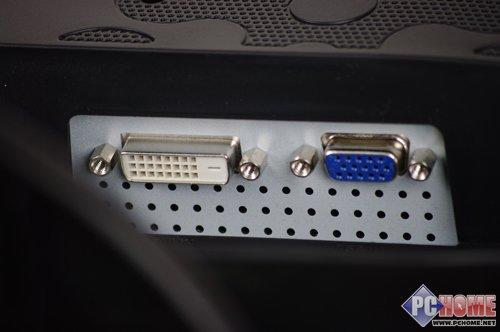 显示器背面的右下方是DVI和VGA接口,这足以满足一般用户的使用需求,并且显示器还可通过DVI接口支持HDCP。比较遗憾的是随即附件中并没有DVI线,用户需自行购买。