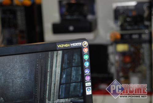 华硕 VK246H为24寸宽屏液晶显示器,全钢琴烤漆。16:9的标准高清比例看大片要比16:10有更大的优势。显示器的OSD按键整齐排列在正面边框右下角。