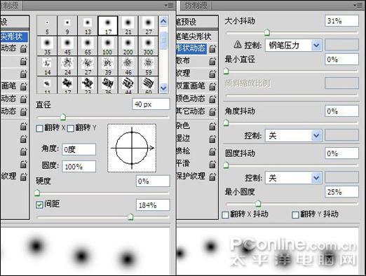 17、再新建一个图层,重命名为"白色墨点2",使用前面载入的画笔在绘制如图28所示另外的一个墨点,最后将太平洋女性网的logo拖拽至合适的位置,调整其大小就完成了这副作品。