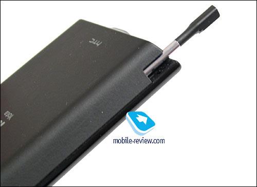 机身的左侧是音量调节键、右侧只有一个扬声器,没有任何按键,机身顶端是开关键、底部则是HTC自家的ExtUSB接口,是充电\数据线\TV-OUT\耳机多功能接口,这也意味着Touch HD上的3.5mm耳机孔没有出现,比较遗憾。此外,手写笔则是位于侧边的底端,手写笔很长,使用很方便。