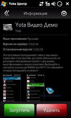 作为俄罗斯运营商的定制版,HTC MAX还特别有了Yota的服务菜单,包括软件、网络电视、音乐、视频等等都可以进行下载。
