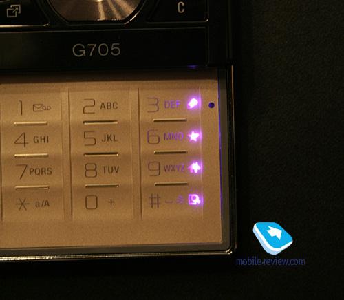 索尼爱立信G705手机的数字键盘右侧还有四颗会发亮的按键。