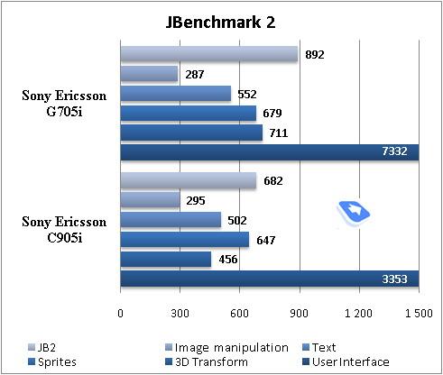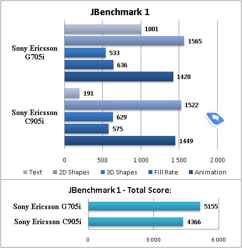 笔者使用JBenchmark软件对索尼爱立信G705手机的JAVA性能进行了测试,测试结果见下面组图。