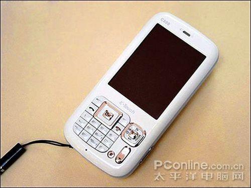 天语C800采用最为常见的直板设计,月光白的机身给人一种干净整洁的味道。手机的三围尺寸为123×56×21mm,握在手里手感不错,较为厚实。在键盘方面,手机有独特之处,在数字键右方设置拍照快捷键,方便用户的拍照使用,也体现了手机强大的拍摘功能。屏幕方面,配备一块2.8英寸26万色QVGA分辨率的TFT屏,显示效果很不错。