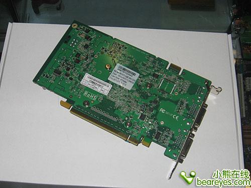 它搭载1.0ns GDDR3极速显存,正面4颗16Mb×32bit显存颗粒共组成256M/128bit的主流规格。显卡运行频率为核心675/显存1800MHz。