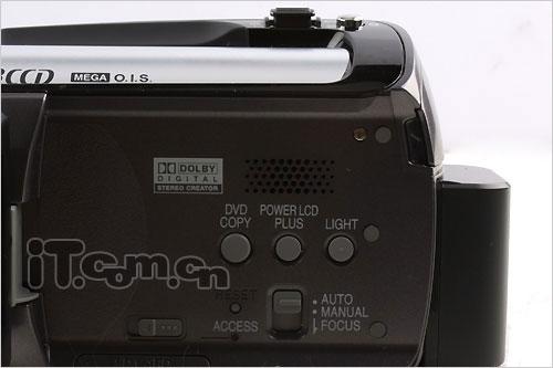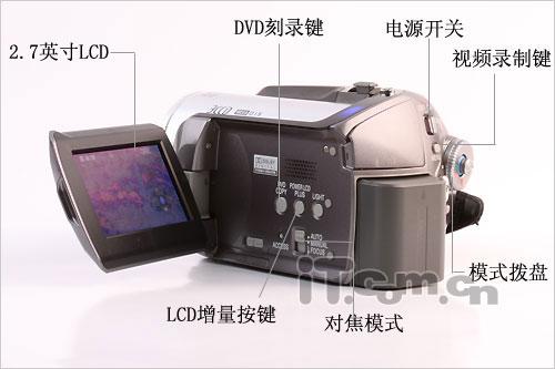 机身的侧面分布有DVD拷贝按键,LCD增量按键和闪光灯开关按键,一键功能方便用户使用。下面是自动拍摄模式,手动对焦等按键,手动拍摄有助于提高个性创作