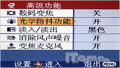 SDR-H288GK的参数设置菜单非常简单且直观。从媒体选择菜单中可以设置视频及图像的存储介质,在高级功能中可以对快门效果和光学防抖功能开关的控制。其他还包括LCD的设置,发光,演示模式等比较详细的功能。
