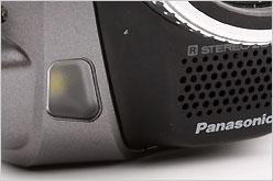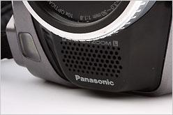 从正面看,SDR-H288GK的镜头显得非常平实,没有特别大的特色。镜头下方是立体声收音麦克风,而这种将收音麦克风设计于正面的做法可令收音效果更出色。镜头再往下的就是用于拍照的闪光灯了,总之整个正面设计相当简约。