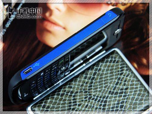 摩托罗拉Q11机身周边的接口和按键并不多,只是一些常规的配备。不过倒是它闪电蓝的装饰条配色非常抢眼,给整机增添了一抹靓丽的风景。