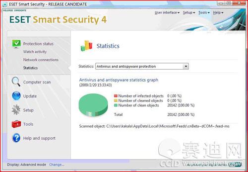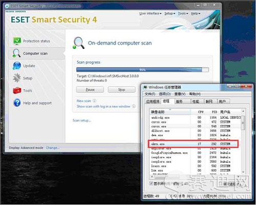不仅如此,ESET NOD32 RC 4.0的手动扫描也较原有版本更加的迅速。在测试中我们发现,其扫描不仅快速,更为重要的是ESET NOD32在手动扫描时的CPU占用大部分时间一直保持在30%以下,相对于其它安全软件在扫描时CPU占用100%的情况,ESET NOD324.0 RC版的资源占用可谓达到了登峰造极的境界。因此,就算用户一边处理其他事务,一边进行扫描也不会感到系统反应迟缓。