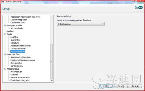 在ESET NOD32安全套装 4.0 RC中内置了系统更新提醒功能。通过该功能,用户可以及时下载系统最新的补丁,从而将安全风险降到最低。当然,ESET NOD32安全套装 4.0 RC也允许设置更新提醒的等级或者关闭更新提醒。