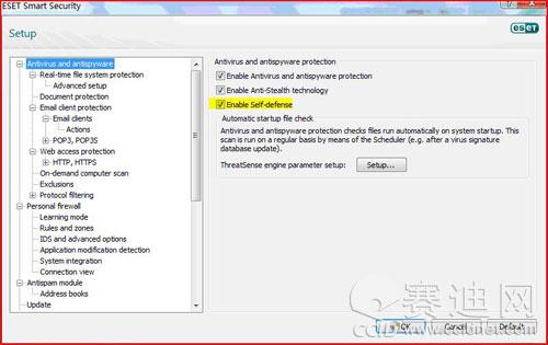 当今,越来越多的恶意软件将防病毒软件作为攻击目标。许多恶意软件都会首先尝试使用户系统中的防病毒软件失效,从而使其能够更加顺利的侵入系统进行破坏。因此,防病毒软件的自我保护能力就显得尤为重要。在3.0版本中,ESET NOD32的进程能够在被结束后自动启动,达到继续保护用户电脑的作用。而在4.0 RC版中,其自我防护能力得到极大的加强。不仅其核心进程无法被结束,其服务以及关键文件也是无法修改和删除的。这就保证了ESET NOD32能够抵御病毒的攻击和破坏,带给用户铜墙铁壁般的保护。当然,ESET NOD32也提供关闭自我保护的选项,满足一些用户在特定情况下需要关闭自我保护的要求。
