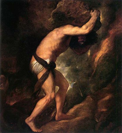 古希腊神话的悲剧人物西西弗斯被宙斯诅咒,在地狱中不断地推巨石上山,巨石到了山巅,又滚滚落到了山脚。就这样日复一日、年复一年地推着巨石……这种徒劳无功、毫无指望的苦役真令人痛苦难熬。