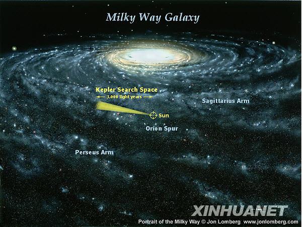 从美国航天局网站获得的这幅图像描述的是银河系以及“开普勒”号太空望远镜搜索太阳系外类地行星的范围