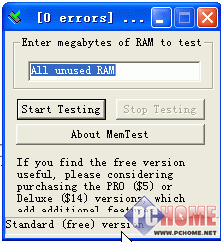 使用非常简单,直接在软件里输入要检测的内存数值即可(图4),但免费版最多只能检测1GB的内存。不过我们可以多开几个程序,并分别分配好每个程序的测试值。当然,测试时间也是越长越好,一旦检测过程中有错Memtest会即时报告我们。