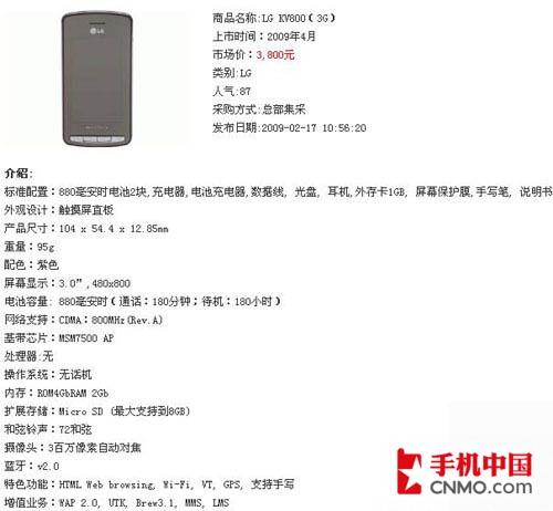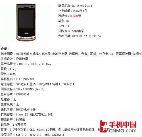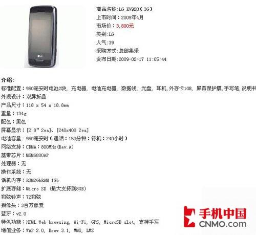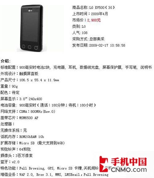 LG的四款3G手机分别是:LG KV755、LG KV920、LG KV500、LG KV800。