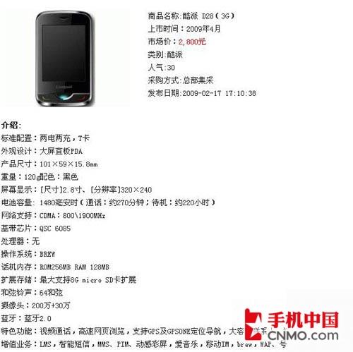 针对CDMA 2000网络37款电信定制机曝光(5)