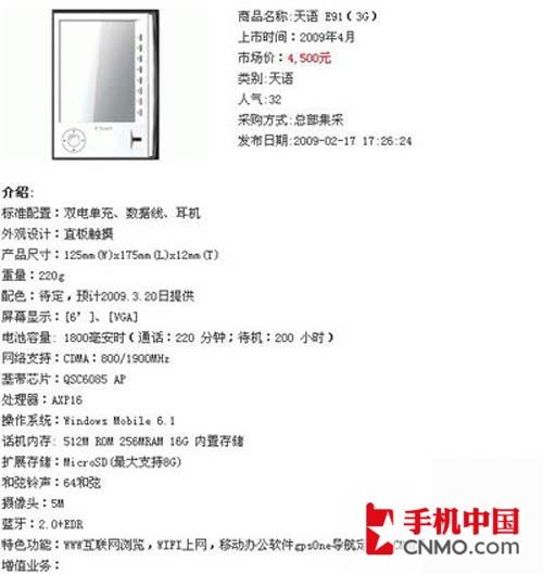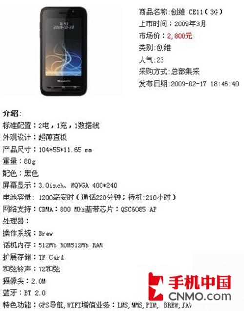 多普达的一款是多普达 S900c,UT斯达康的一款是UT ES500,创维的两款分别是:创维 CE11、创维 PE10。