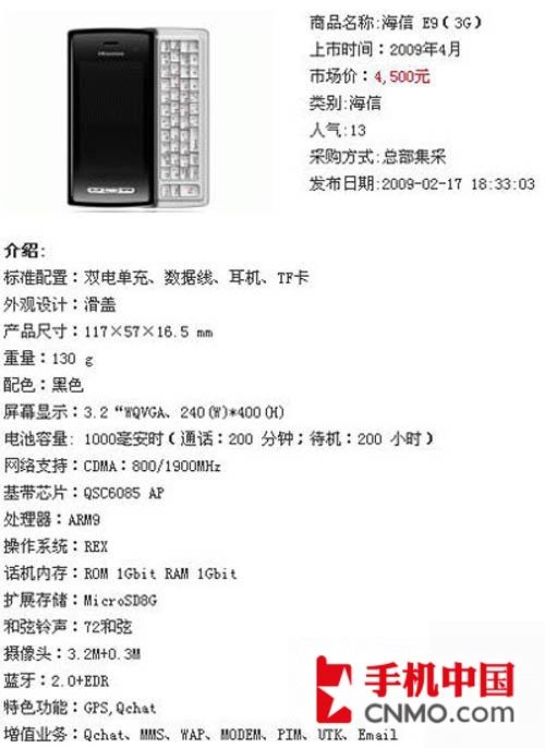 OKWAP的两款分别是:OKWAP i760、OKWAP i780,海信的两款分别是海信 E6、海信 E9。