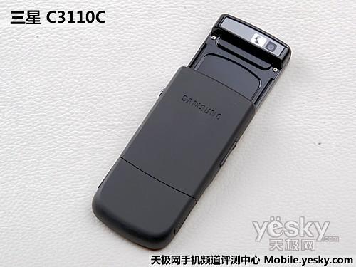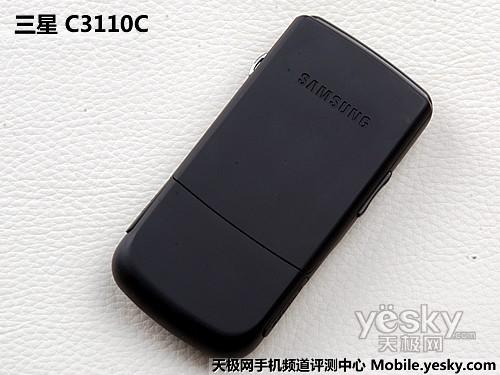 三星 C3110C机身背面采用三星独有的柔适涂层,防止手机从手中滑出。背面上方是三星的经典铭牌。