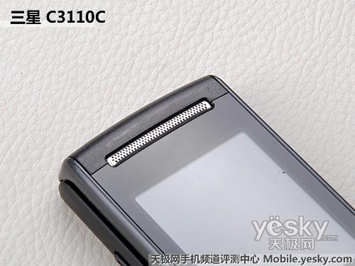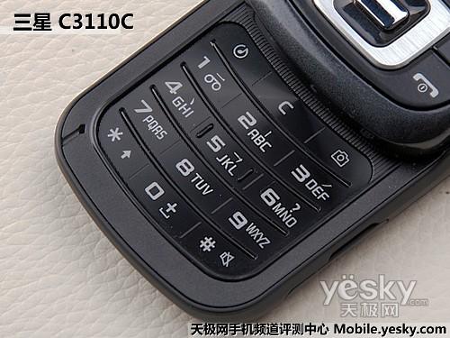 三星 C3110C机身以黑色为主,听筒和导航键用银色的金属修饰,彰显勇士身份,99.8×48.8×15.3mm的三围和96g的体重让该机显得很小巧。