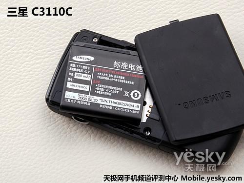 三星 C3110C标配一块880mAh锂电电池,每天20分钟电话,20条短信及30分钟其他操作大约可以待机3天左右,若是一天不停的玩《地下城与勇士》,一天左右电池就没电了。